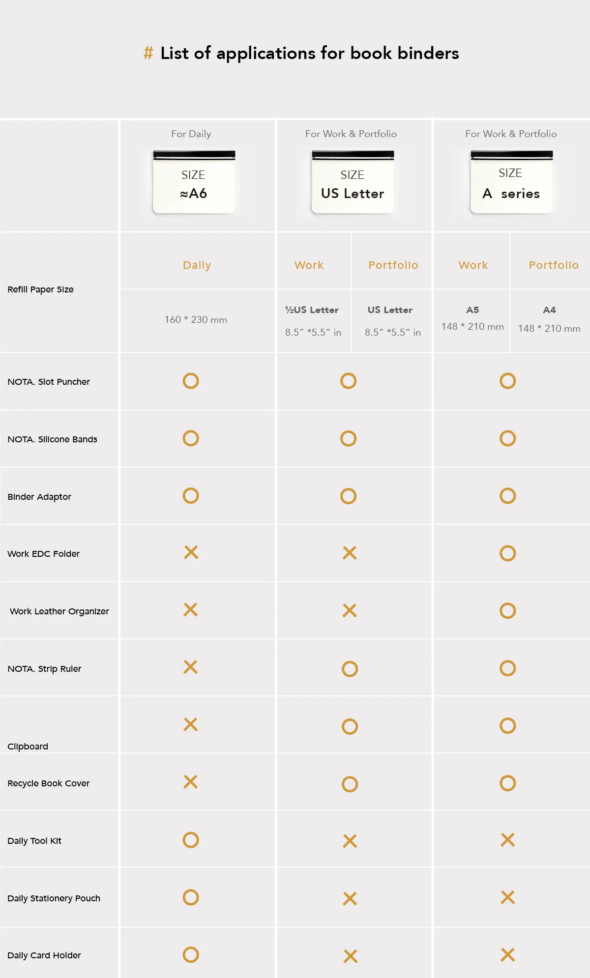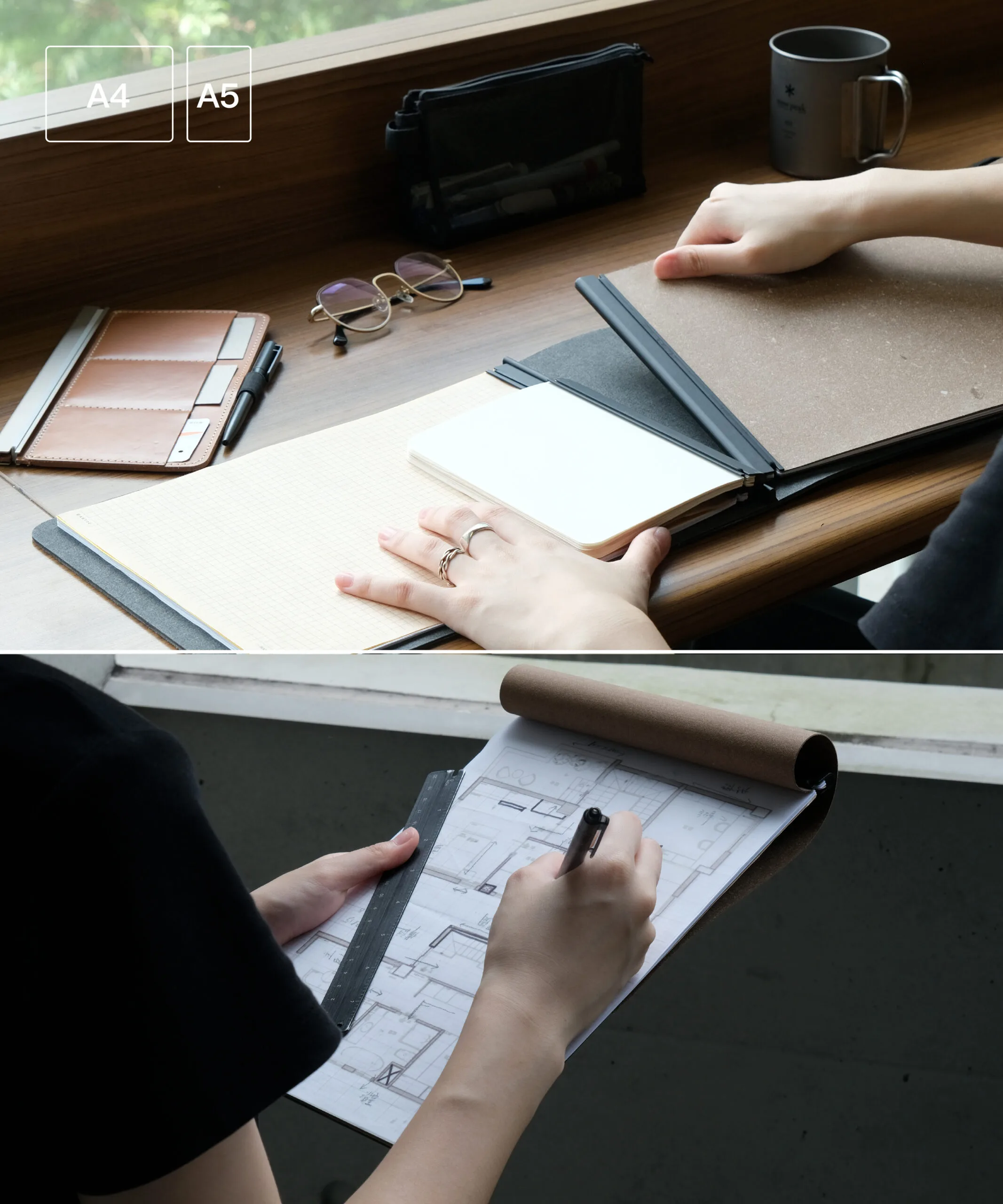 For use with NOTA. WORK( A series binder ) or A5 clipboard ➔ Choose the A5 Cover / For use with NOTA. WORK( NA series binder ) or ½US letter clipboard ➔ Choose the A5 ½US letter Cover