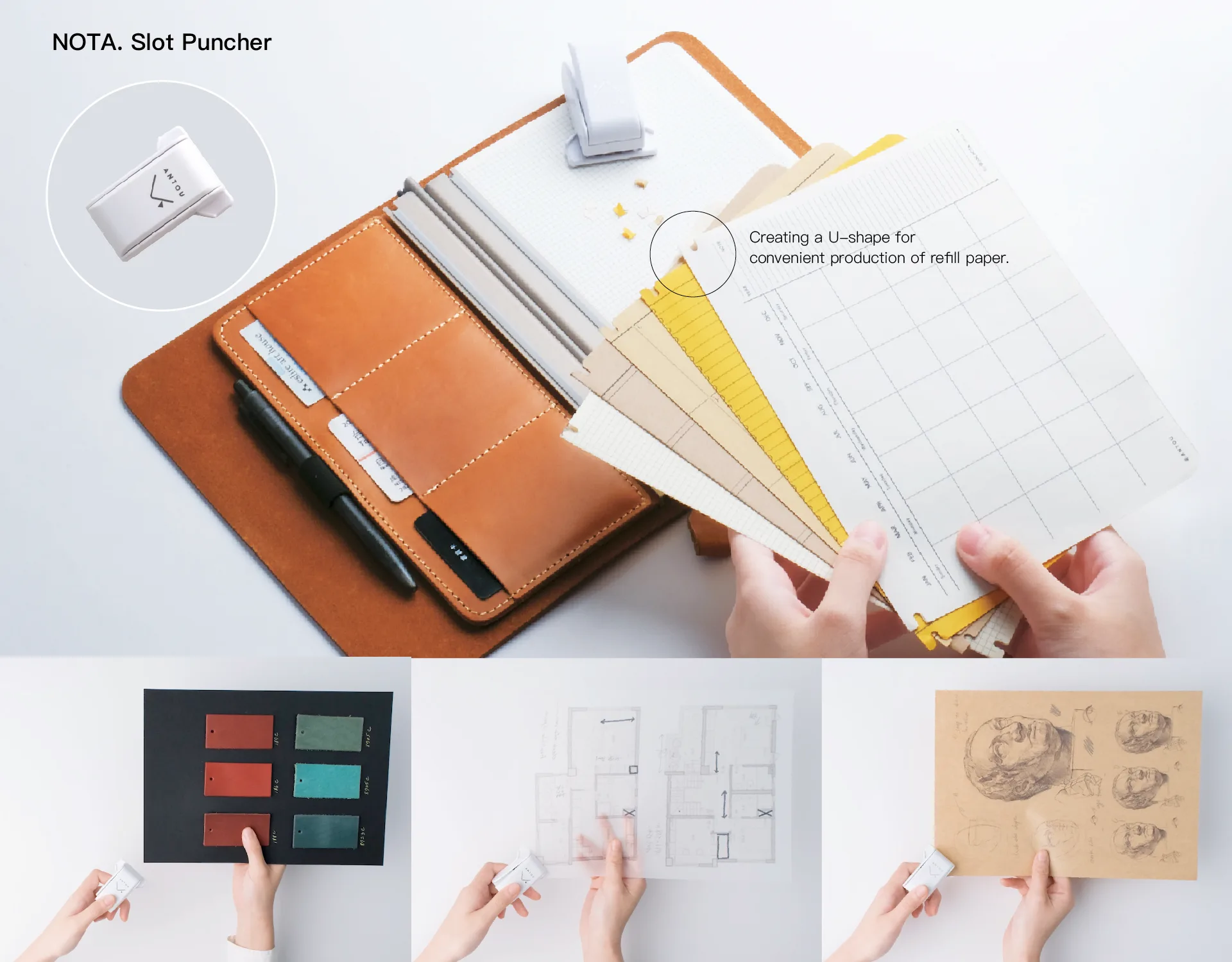 Never need to worry about refilling your beloved notebooks or need to buy various notebook designs. We offer a free NOTA slot puncher for every book purchased and 20+ free designs and support you to max out your creativities.